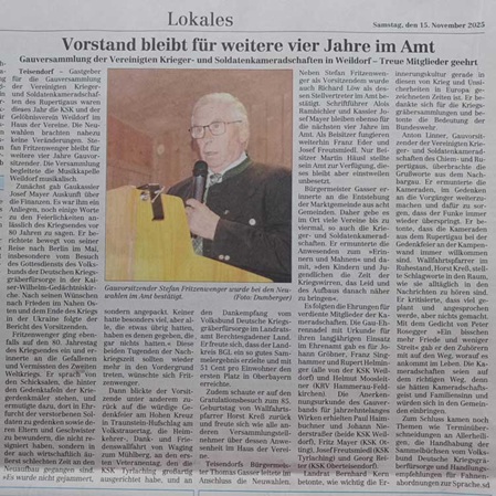 Die Gauversammlung der Vereinigten Krieger- und Soldatenkameradschaften (KSK) des Rupertigaus fand dieses Jahr im Haus der Vereine in Weildorf statt.